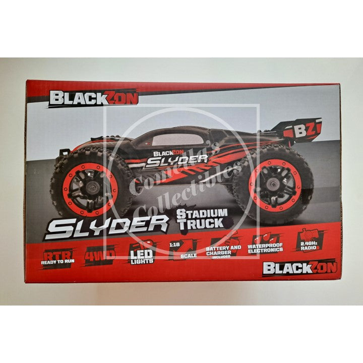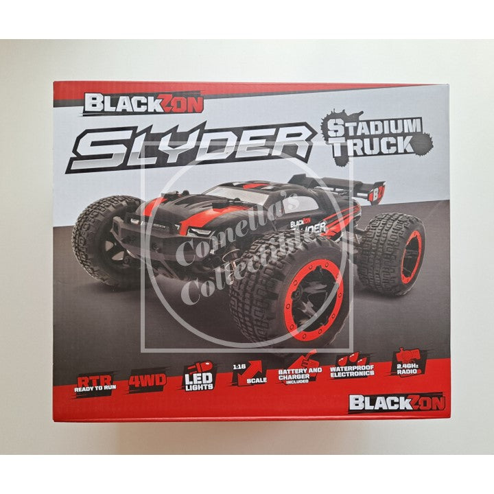 New BlackZon Slyder 1:16 Stadium Truck Red RTR Combo 4WD with LEDs 2.4GHz Tx Battery and Charger #540096 in factory sealed retail box.