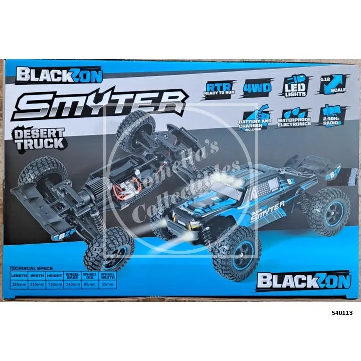 BlackZon Smyter 1:12 Scale Blue Desert Truck RTR Combo 4WD with LED 2.4GHz Battery & Charger 540113 in factory sealed retail box.