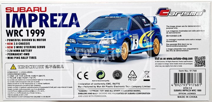 Carisma GT24 2.0 Spec 1/24 Scale Subaru Impreza WRC 1999 4WD RTR Brushless #91768 in factory sealed retail box.