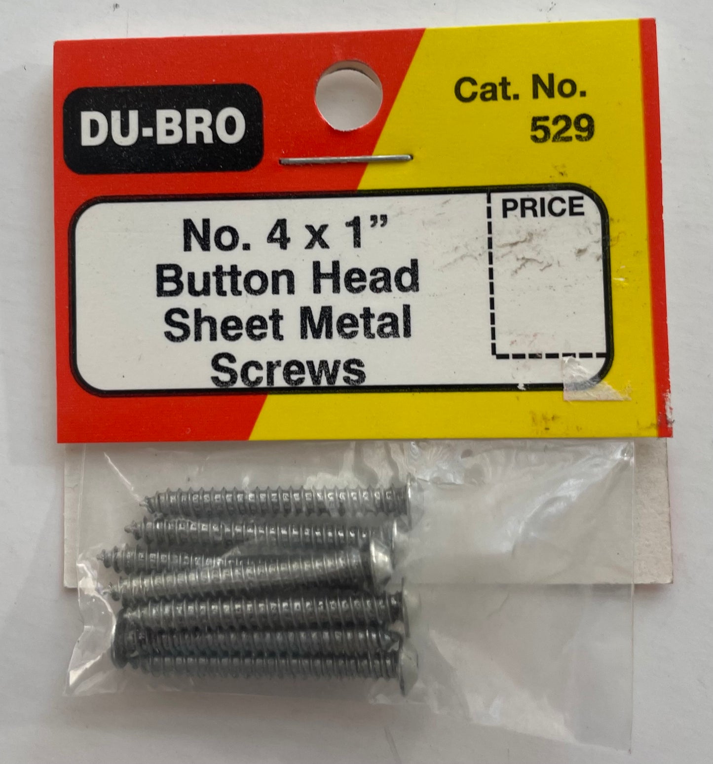 Du-Bro No.4 x 1" Button Head Sheet Metal Screws (8 pc) #529 in retail package.