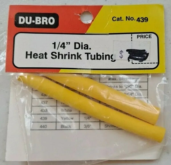 DUBRO 1/4" Diameter Heat Shrink Tubing, Yellow, 2 pieces - #439 in retail package.