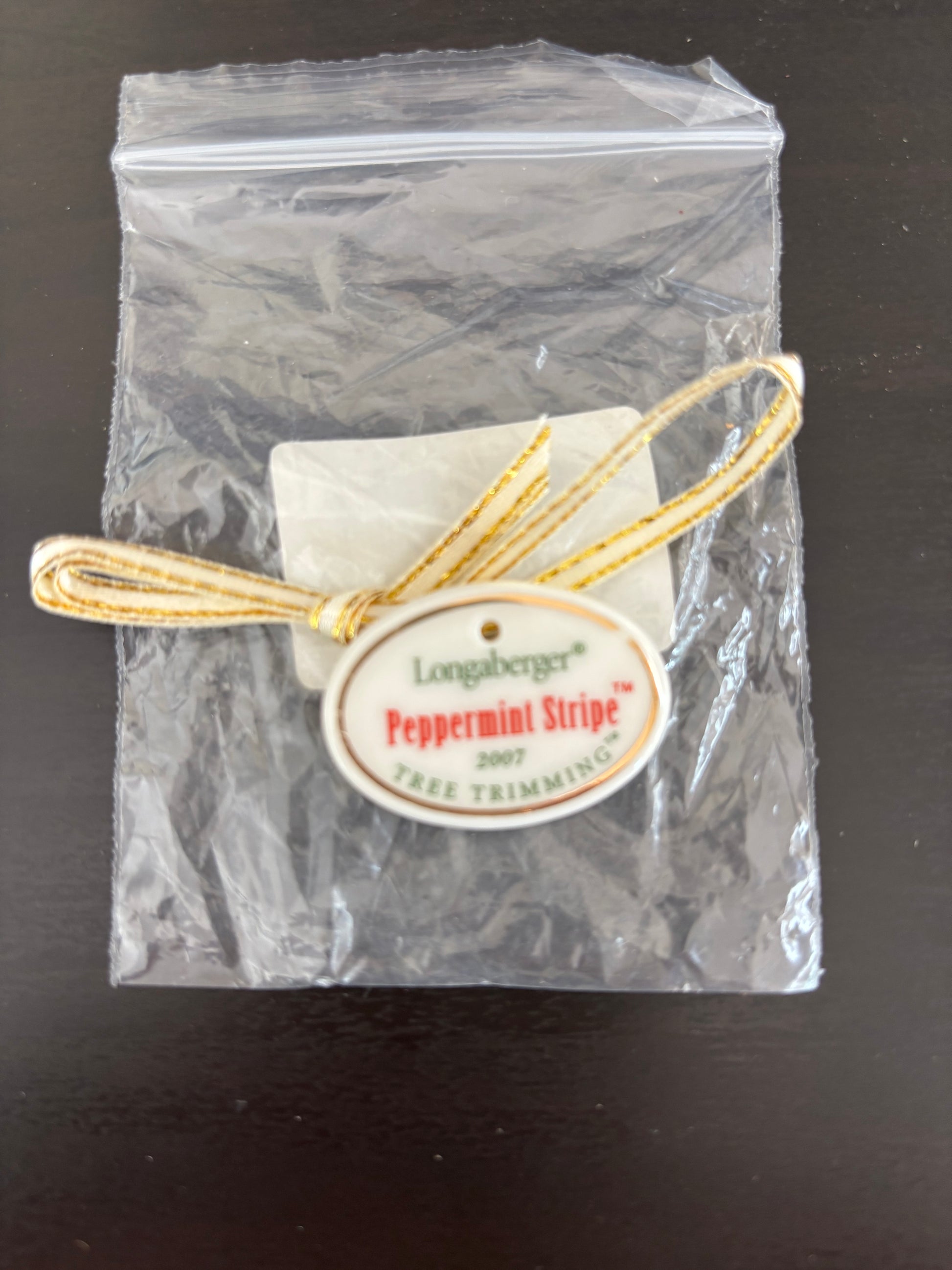 Brand new 2007 Peppermint Stripe Tree Trimming Basket Tie On.