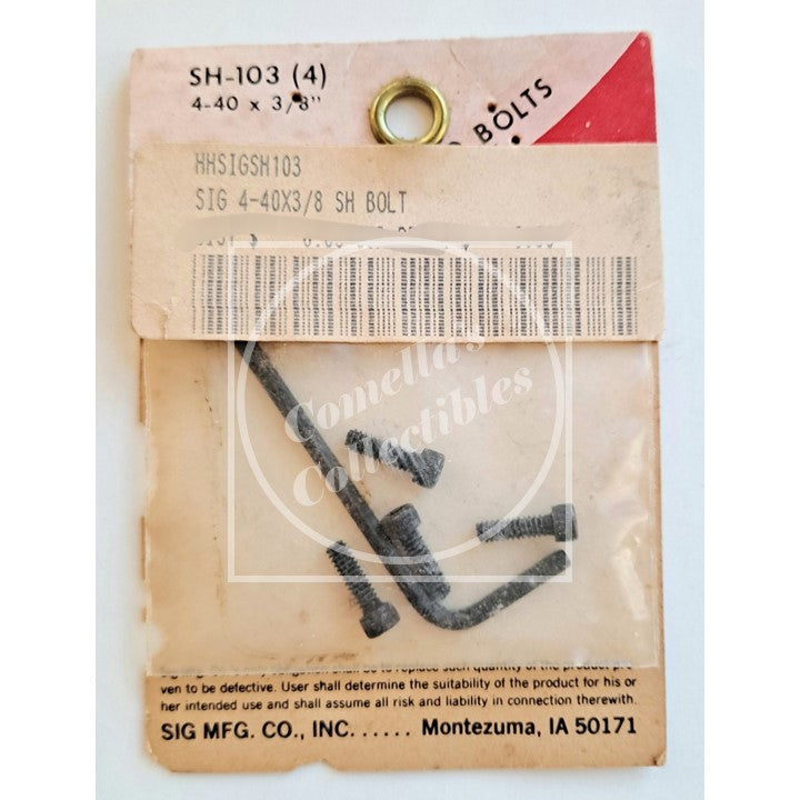 Vintage NOS SIG Manufacturing 4-40 x 3/8" Steel Bolts (4 pcs) SH-103 in original factory sealed retail package.